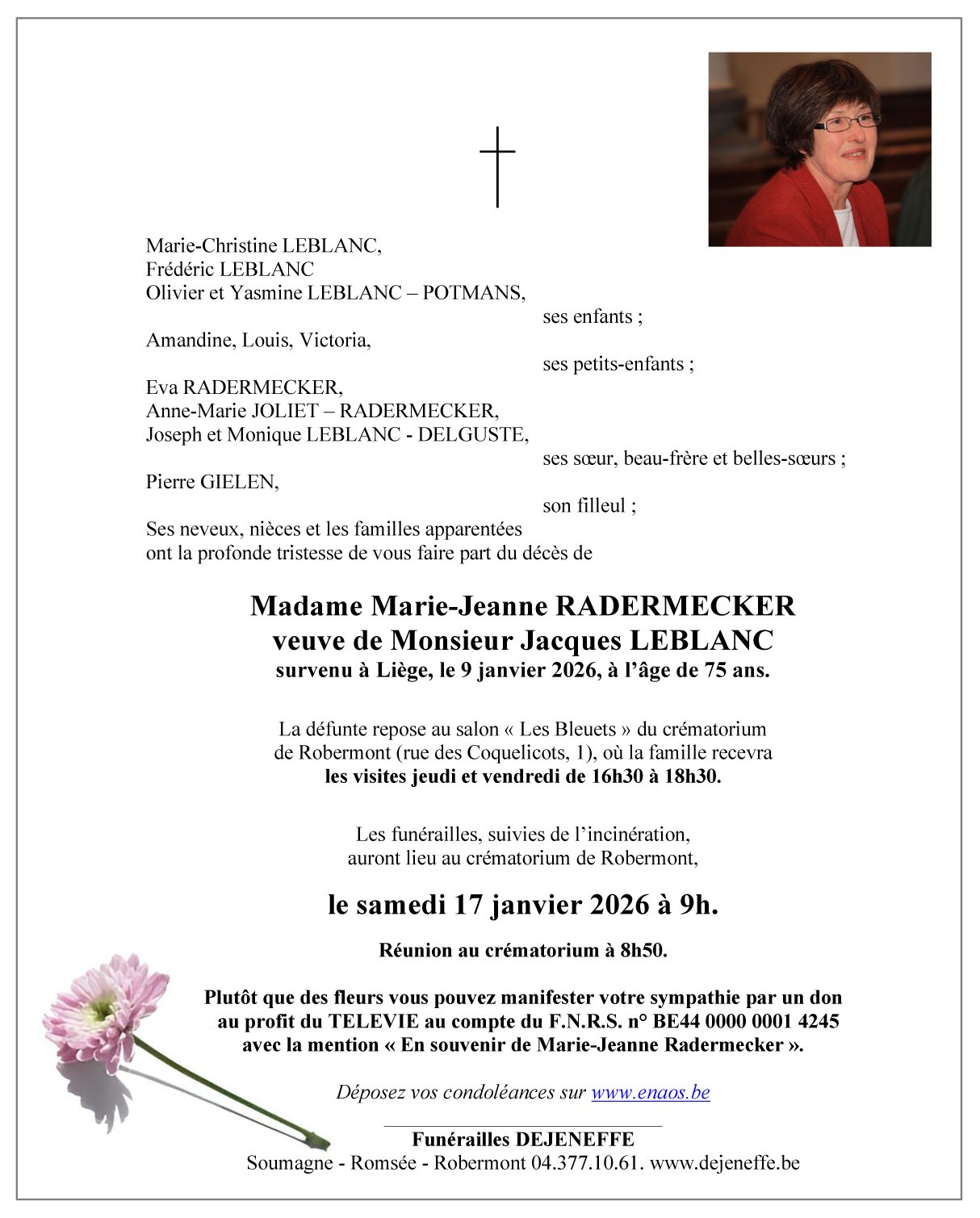 Madame Marie-Jeanne LEBLANC - RADERMECKER