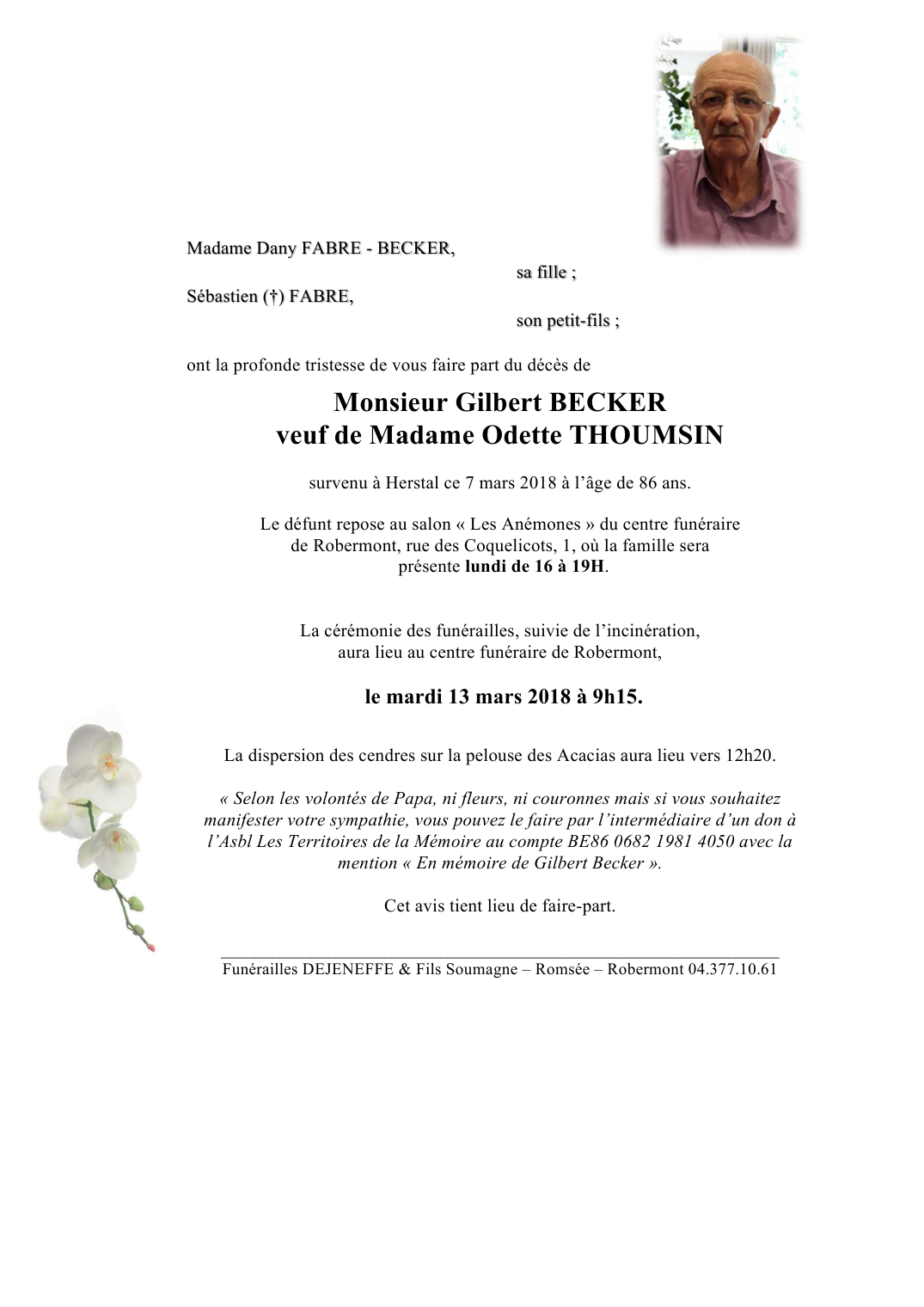 Décédé à Herstal (4040) le mercredi 7 mars 2018 à l'âge de 86 ans