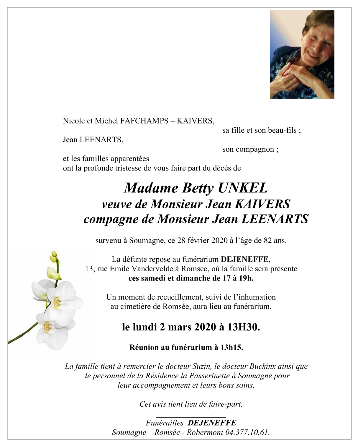 Décédée à Soumagne (4630) le vendredi 28 février 2020 à l'âge de 82 ans
