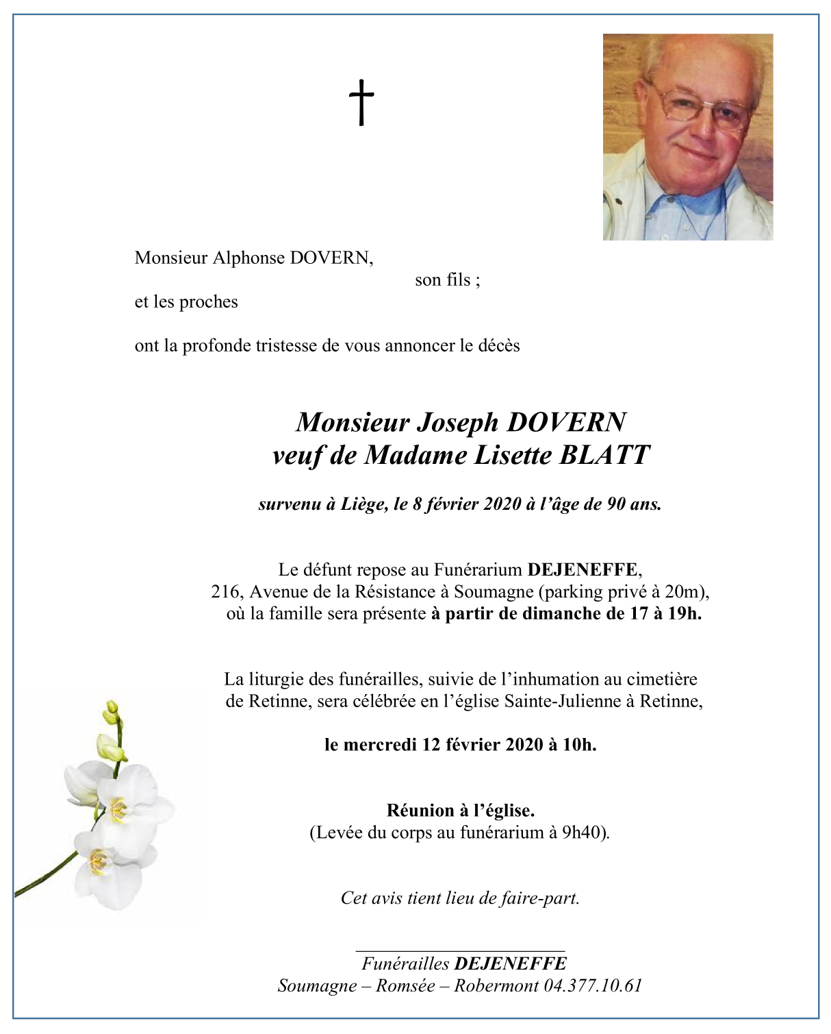 Décédé à Liège (4000) le samedi 8 février 2020 à l'âge de 90 ans