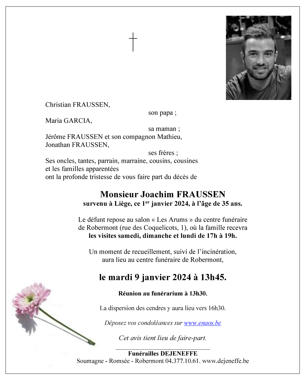 Décédé à Liège (4000) le lundi 1 janvier 2024 à l'âge de 35 ans