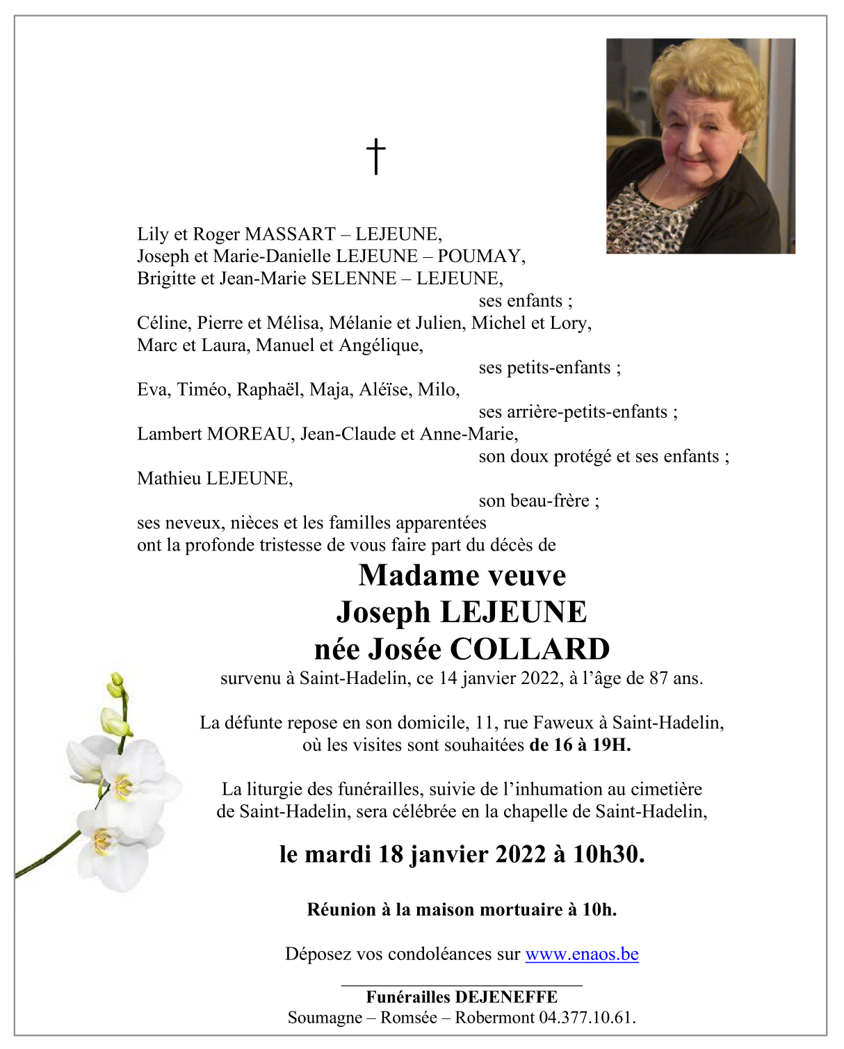 Veuve de Monsieur Joseph LEJEUNE