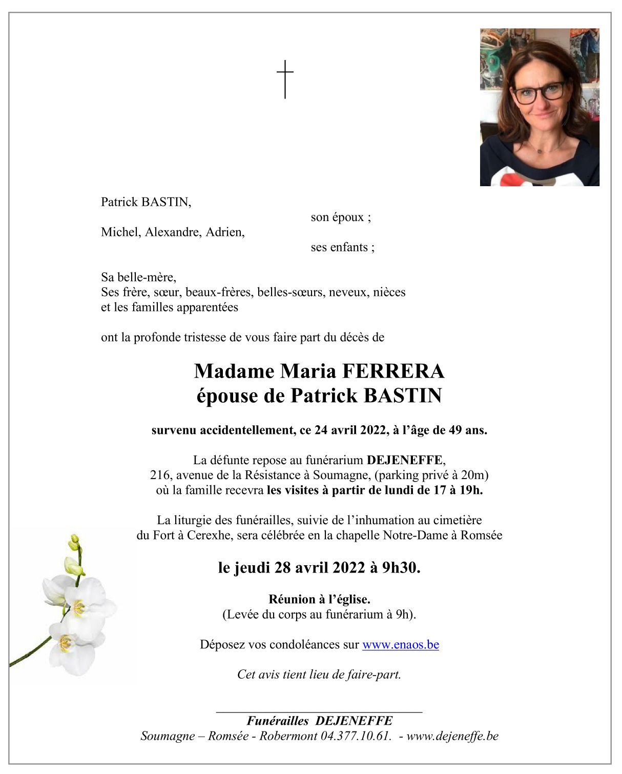 Décédée à Esneux (4130) le dimanche 24 avril 2022 à l'âge de 49 ans