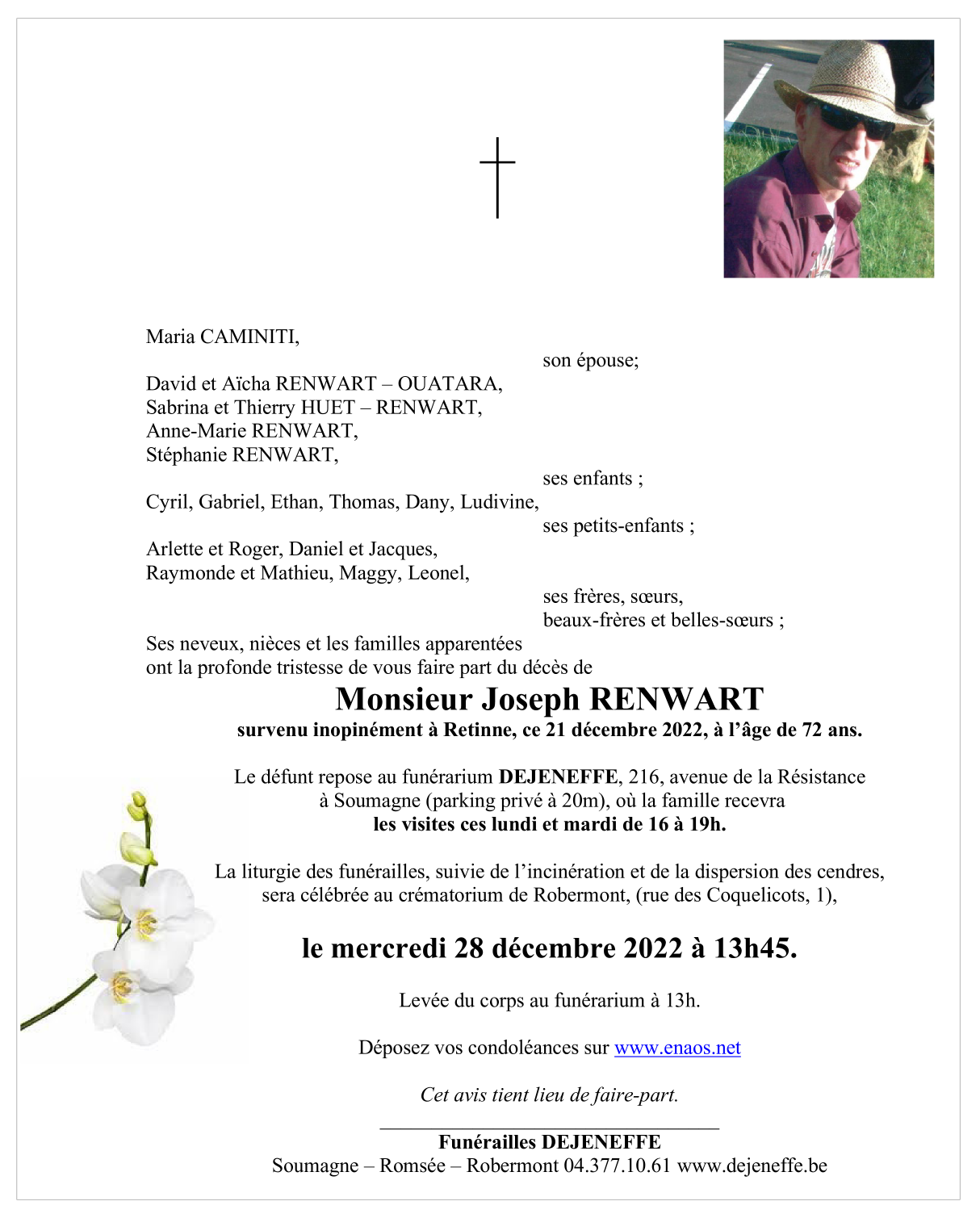 Décédé à Retinne (4621) le mercredi 21 décembre 2022 à l'âge de 72 ans