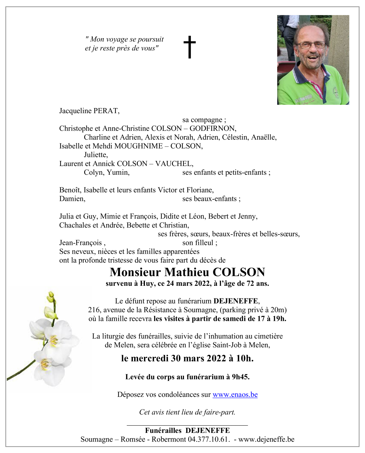 Décédé à Huy (4500) le jeudi 24 mars 2022 à l'âge de 72 ans