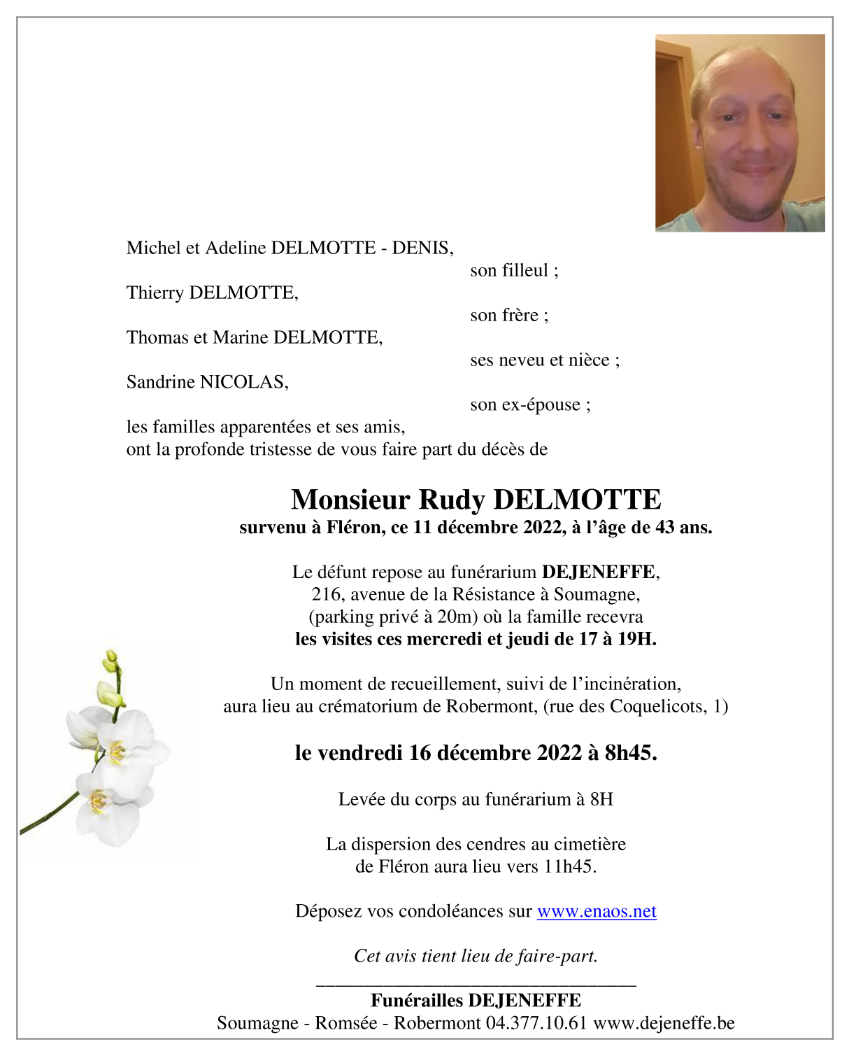 Décédé à Fléron (4620) le dimanche 11 décembre 2022 à l'âge de 43 ans