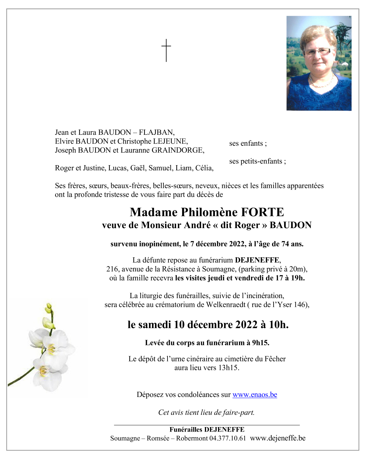 Décédée à Soumagne (4630) le mercredi 7 décembre 2022 à l'âge de 74 ans