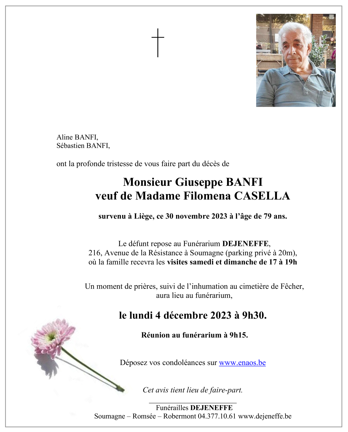 Décédé à Liège (4000) le jeudi 30 novembre 2023 à l'âge de 79 ans