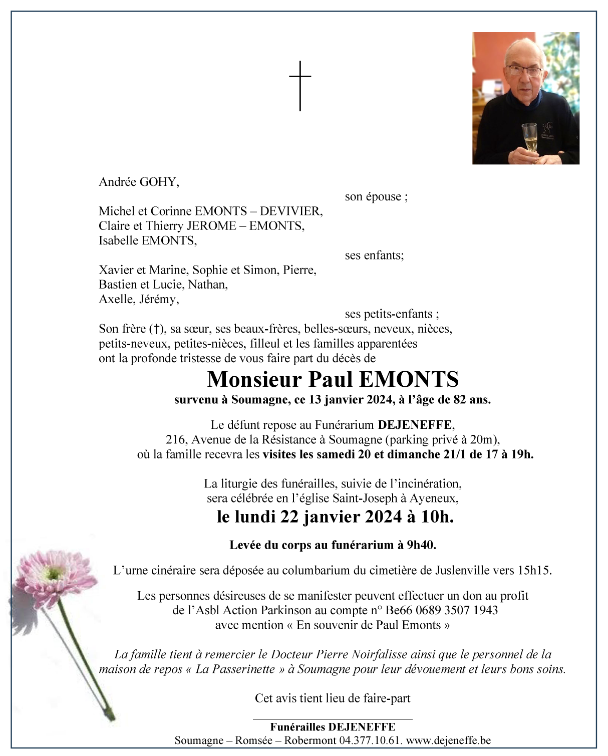 Décédé à Soumagne (4630) le samedi 13 janvier 2024 à l'âge de 82 ans
