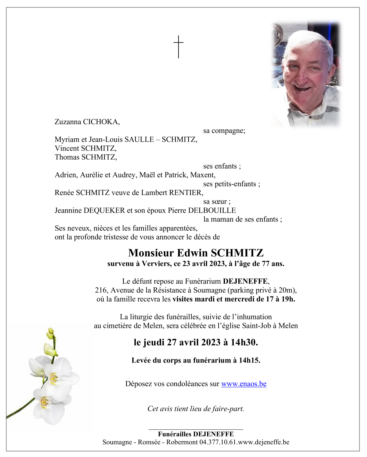 Décédé à Verviers (4800) le dimanche 23 avril 2023 à l'âge de 77 ans