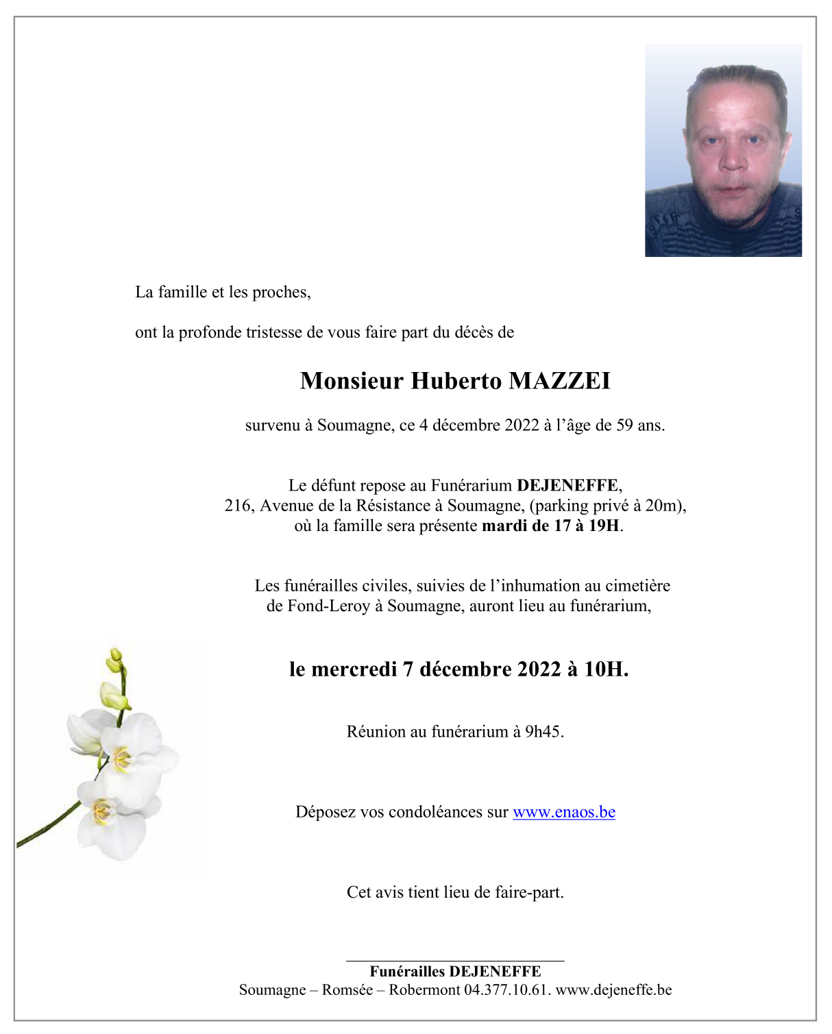 Décédé à Soumagne (4630) le dimanche 4 décembre 2022 à l'âge de 59 ans