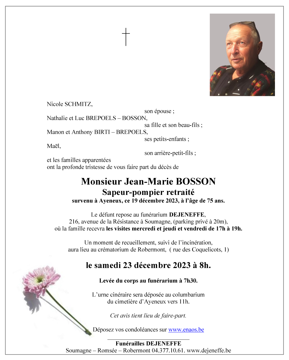 Décédé à Ayeneux (4630) le mardi 19 décembre 2023 à l'âge de 75 ans
