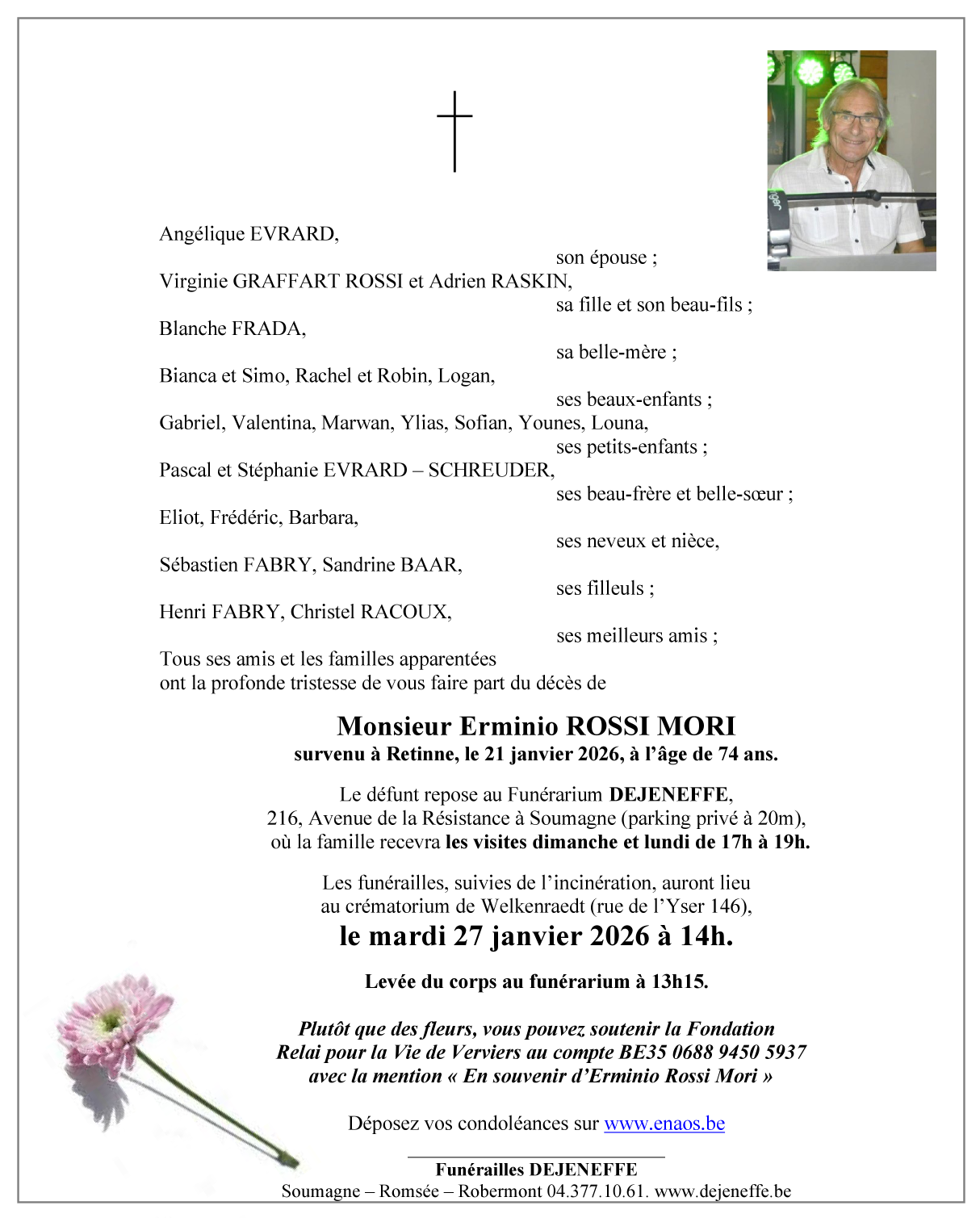 Décédé à Retinne (4621) le jeudi 22 janvier 2026 à l'âge de 74 ans