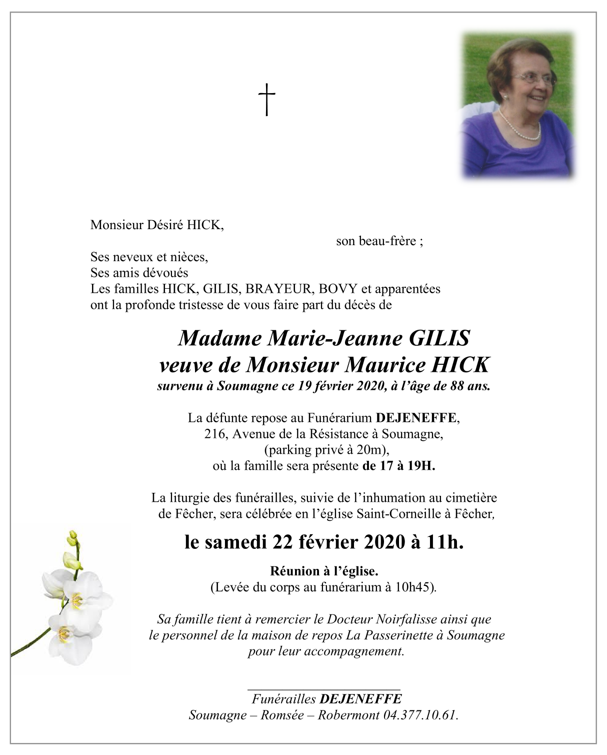 Décédée à Soumagne (4630) le mercredi 19 février 2020 à l'âge de 88 ans