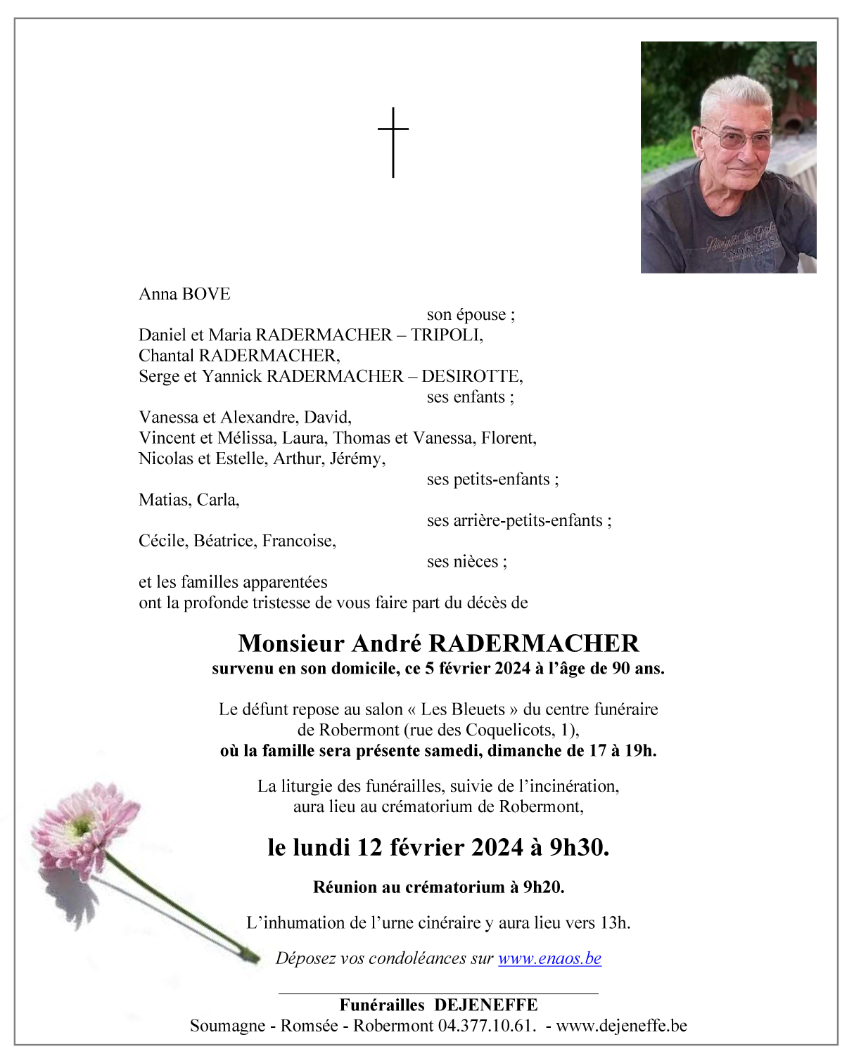 Décédé à Chênée (4032) le lundi 5 février 2024 à l'âge de 90 ans