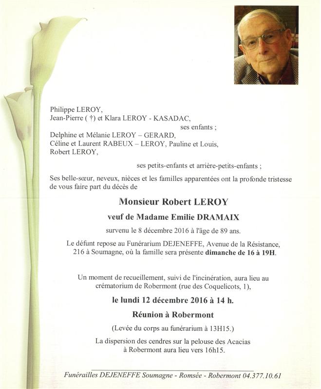 Décédé à Embourg (4053) le jeudi 8 décembre 2016 à l'âge de 89 ans
