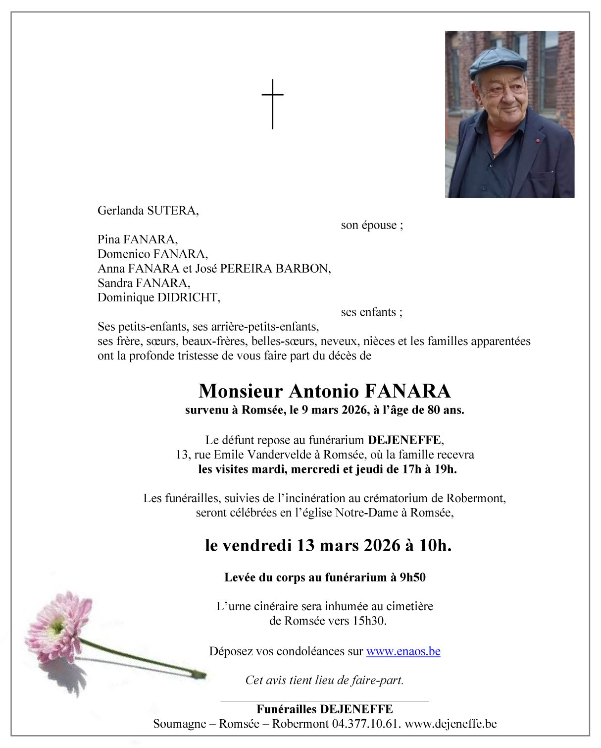 Décédé à Romsée (4624) le lundi 9 mars 2026 à l'âge de 80 ans